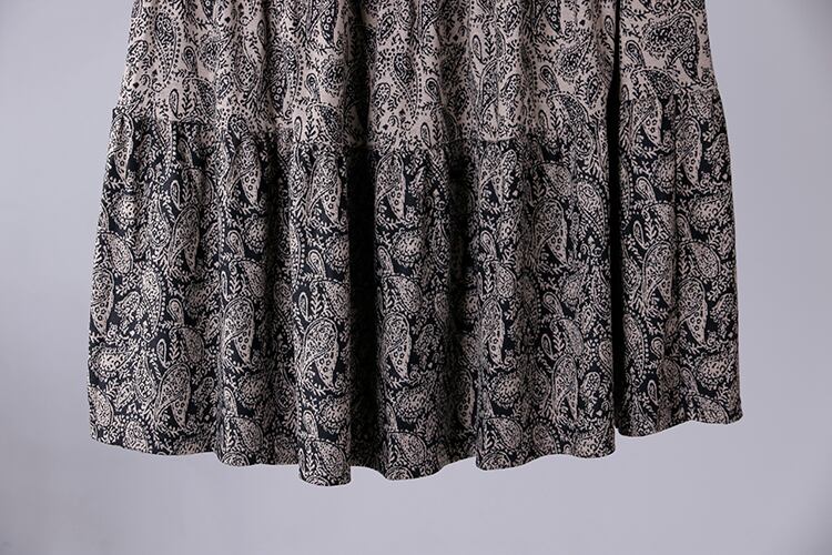 オリエンタルワンピース ワンピース ワンピ ビーズステッチ Aライン Vカット Vネック 長袖 ロング丈 花柄 フラワー フローラル ボタニカル ペイズリー プリント バイカラー 春秋 ハイウエスト レディース シック 上品 上質 ラグジュアリー エレガント レトロ シンプル ノスタルジック タウン お出かけ デート お呼ばれ OP-098CA