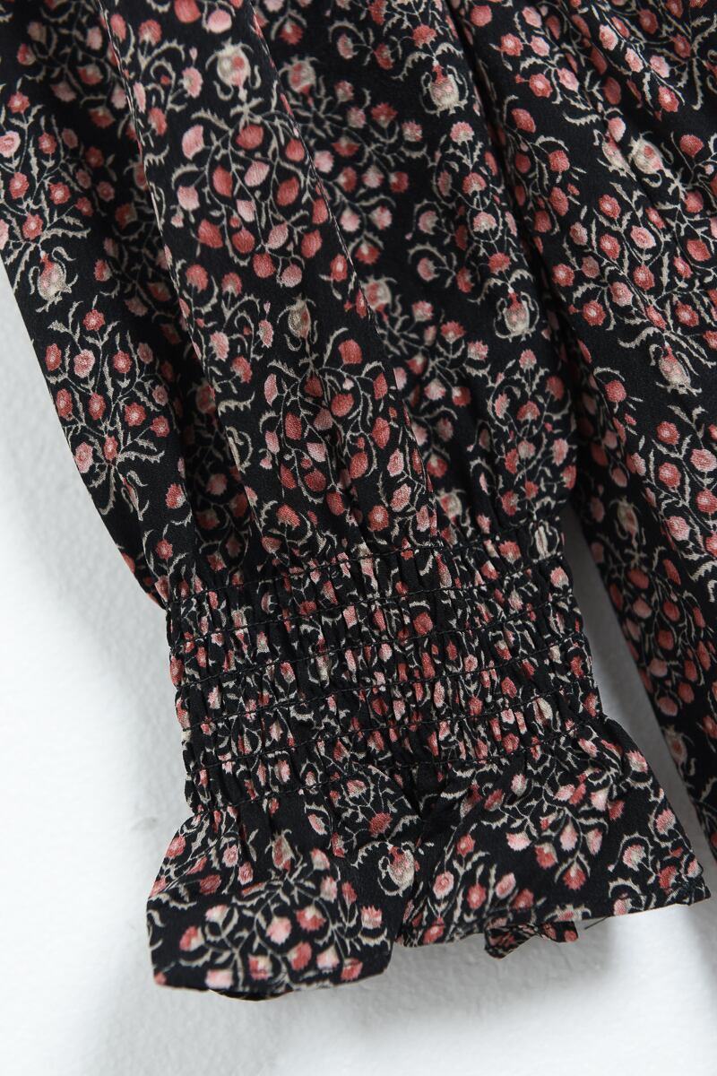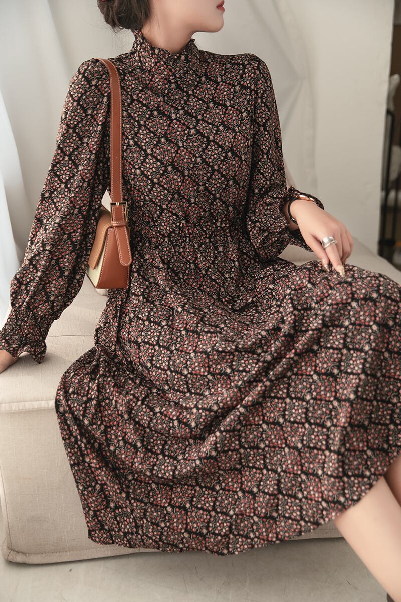 小花柄ワンピース ワンピース ワンピ ハーフタートルネック 裏地付き 長袖 ロング丈 ギャザー シャーリング 伸縮性 フレアスリーブ キャンディスリーブ 花柄 フラワー フローラル ボタニカル プリント 春秋 ハイウエスト レディース フェミニン 大人可愛い エレガント レトロ シンプル ノスタルジック タウン お出かけ デート OP-101CA