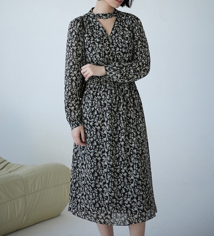 アレンジ次第で着こなしの幅が広がるフローラルVネックワンピース。