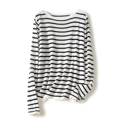ニット トップス ウール ボーダー ストライプ 春秋 プルオーバー 薄手 ミディアム丈 ラウンドネック 柄物 長袖 上質 バイカラー モノトーン 柔らか 快適 チクチクしない レディース 着回し きれいめ シンプル カジュアル 大人可愛い デイリー タウン お出かけ デート TP-109CA