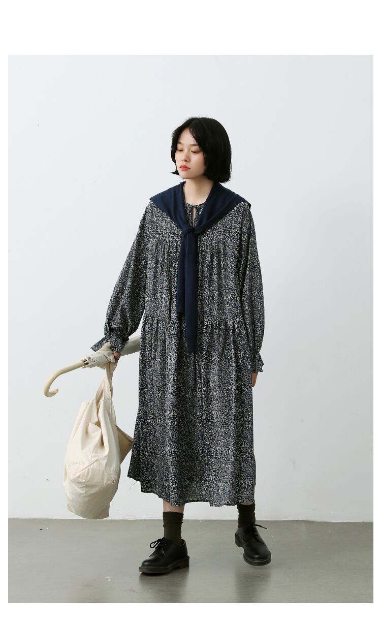 小花柄ワンピース ワンピース ワンピ フレア 長袖 ロング丈 Aライン ふんわり コットン キャンディスリーブ 花柄 フラワー フローラル ボタニカル プリント 春秋 ゆったり 体型カバー ルーズウエスト レディース シンプル フェミニン 大人可愛い ナチュラル レトロ ノスタルジック タウン お出かけ デート OP-117CA