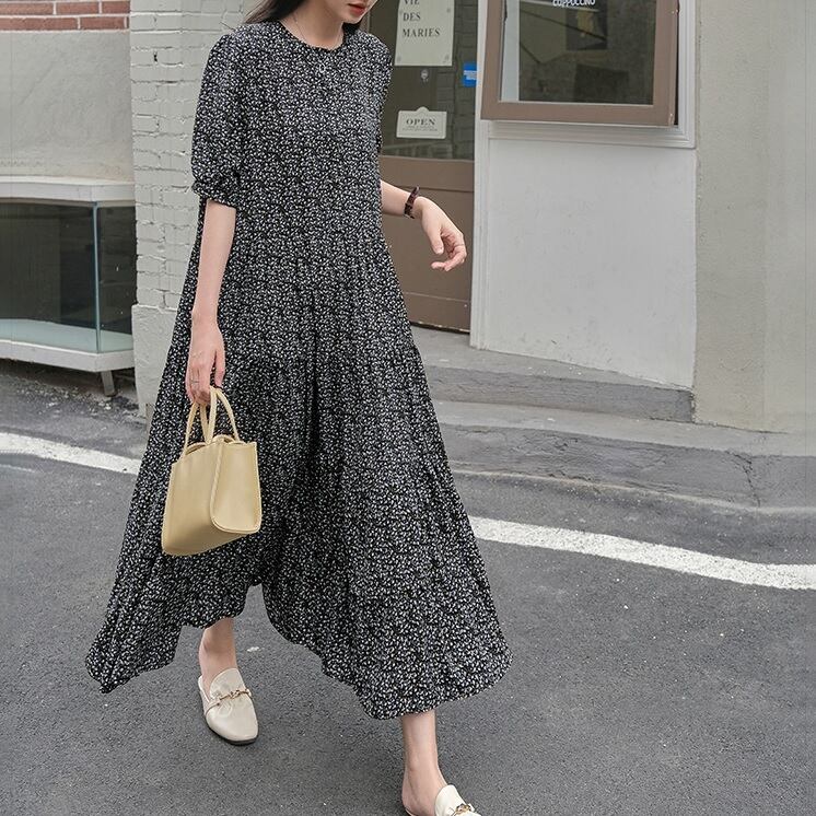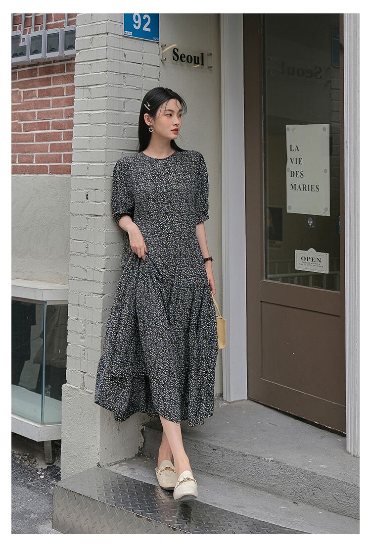 フローラルワンピース ワンピース ワンピ Aライン フレア コットン ロング丈 半袖 パフスリーブ パフ袖 花柄 フラワー フローラル ボタニカル プリント 春夏 大きめサイズ 大きいサイズ ハイウエスト レディース フェミニン 大人レディ 大人可愛い レトロ シンプル ロマンティック タウン お出かけ デート OP-120CA