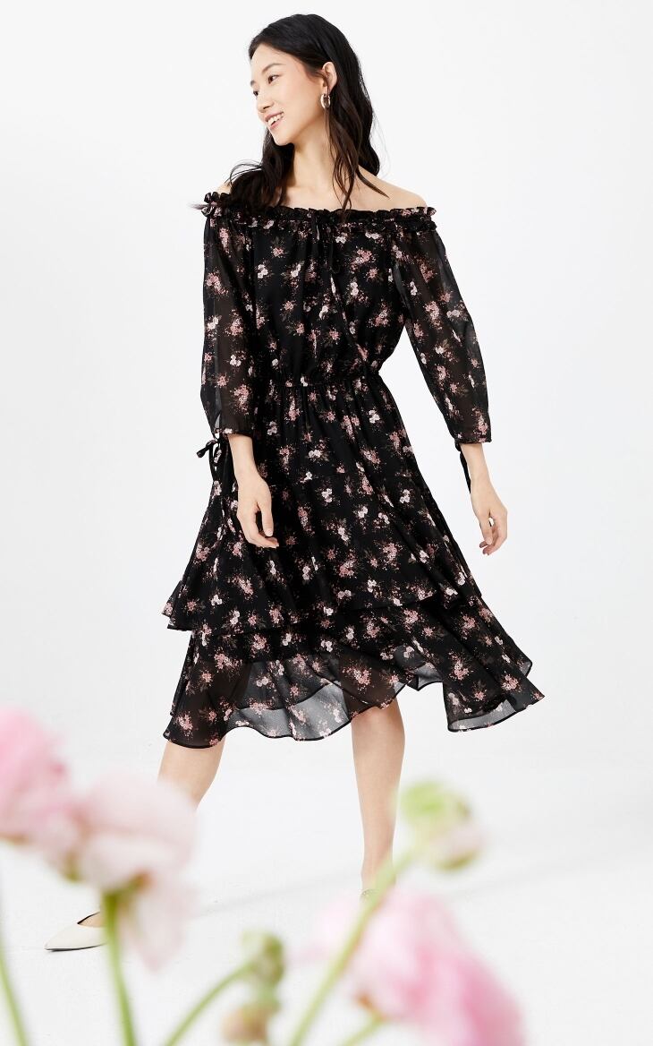 ヘルシーな肌見せが叶う花柄オフショルワンピース。
