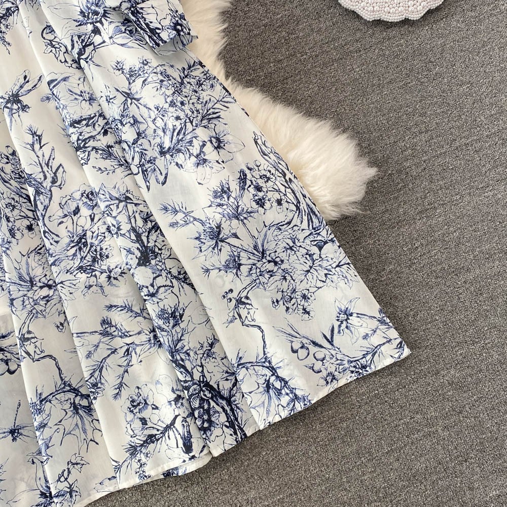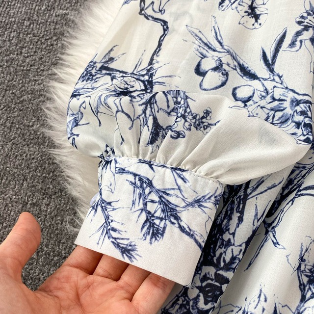 ボタニカルワンピース ワンピース ワンピ シャツワンピース Aライン フレア ウエストベルト 長袖 シャツ袖 ミモレ丈 花柄 フラワー フローラル ボタニカル プリント 墨画風 春秋 ハイウエスト レディース モダン シック きれいめ 上品 エレガント レトロ シンプル ノスタルジック タウン お出かけ デート OP-130CA
