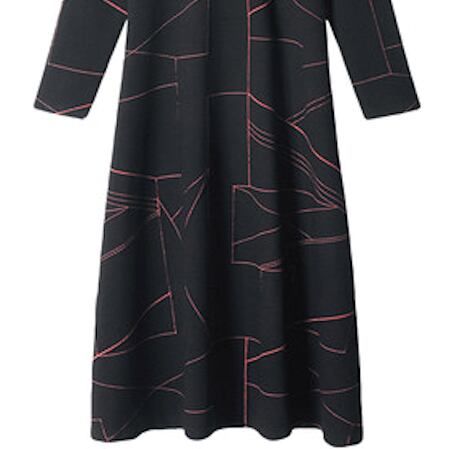 春冬ハーフハイネック Aラインミドル丈ワンピース ラインジャカード レッドジャガード S/M/L/XL/XXL/XXXL スパンディックス サイズ 体系カバー ハイエンドプラスサイズ A3682 OP-001FM