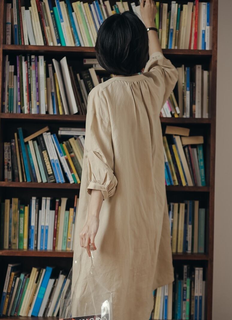 軽やかかつゆったり、ふんわりとしたシルエットが女性らしい印象のコットンリネンワンピース。トレンドのぽわん袖で二の腕カバーにもおすすめです。
