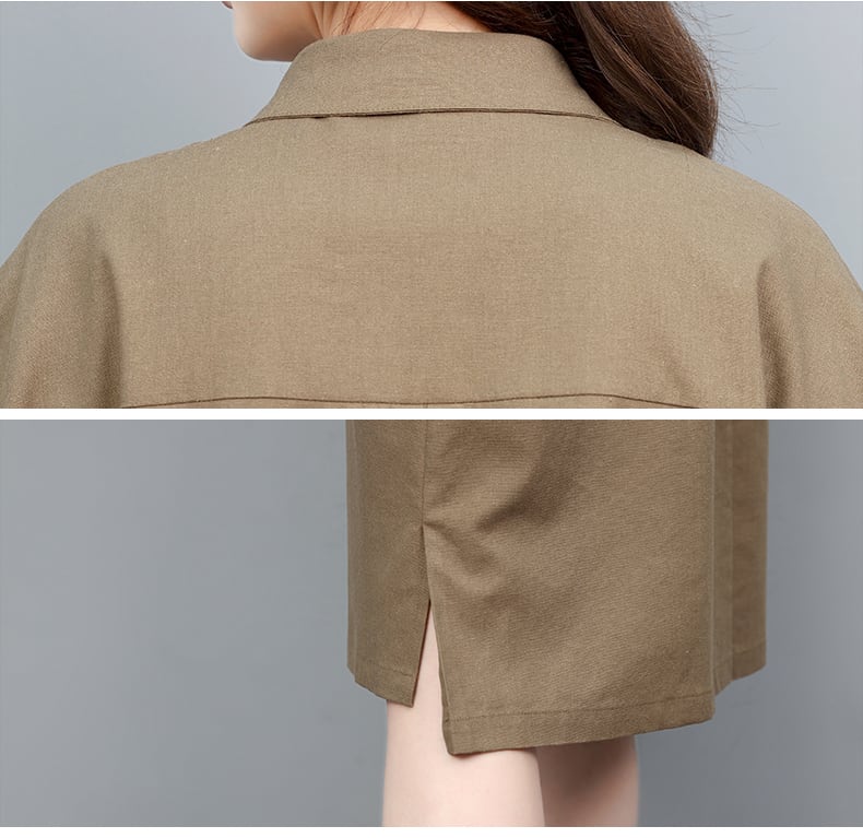 落ちついたカラー展開で、通気性良く、普段使いしやすいシャツワンピース。ポケットがついており機能性も抜群です。上品なミディ丈、サイドスリットで足さばきも良好です。