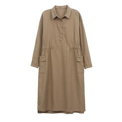 シャツワンピース ワンピース 麻 リネン コットン Aライン ポロカラー ドロップショルダー サイドスリット ルーズウエスト ポケット付き 長袖 フロントボタン ハーフボタン 大きめサイズ 大きいサイズ サイズ豊富 ワントーン 無地 軽やか 涼やか ミディ丈 膝下 ひざ下 春秋 レディース シンプル カジュアル フェミニン ナチュラル レトロ ノスタルジック ,エレガント きれいめ デイリー タウン お出かけ デート OP-151CA