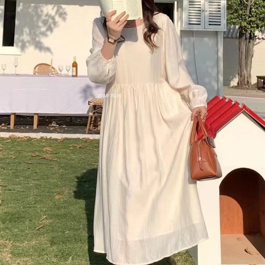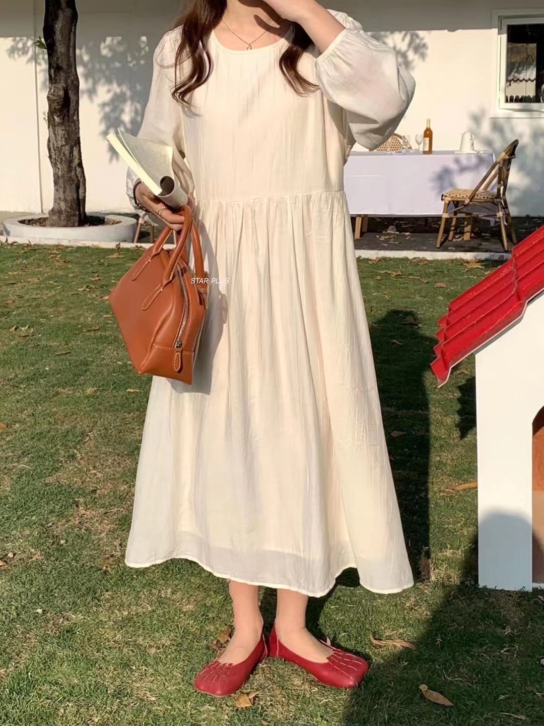 コットンリネンワンピース ワンピース 麻 リネン コットン ウエストリボン 長袖 ロング丈 Aライン ハイウエスト ラウンドネック ふんわり 通気性 ゆったり 軽やか 春夏 ワントーン 無地 レディース シンプル フェミニン 大人可愛い ナチュラル レトロ デイリー タウン お出かけ デート OP-158CA