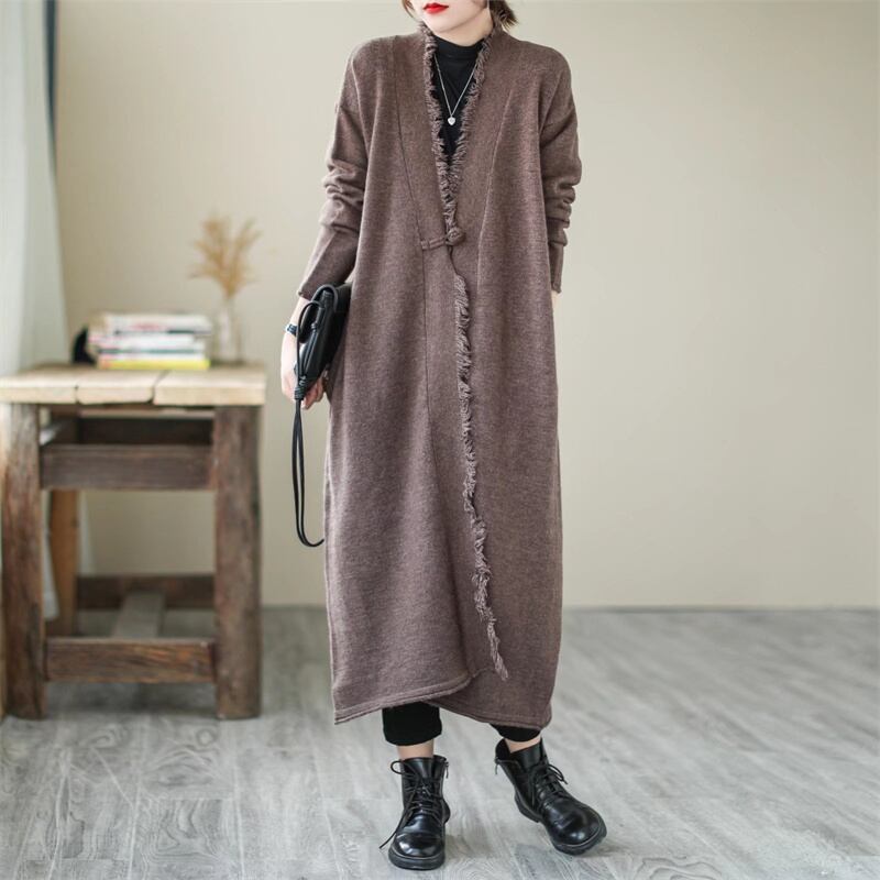 おしゃれリゾットカラーの大きめロングコートカーディガン 厚手のコットンロングコート OU-002FM