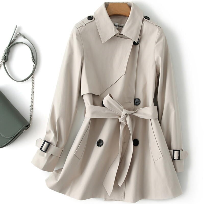 コートトレンチコートアウタースプリングコートショート丈長袖ウェストベルトネイビーオフホワイトベージュレッドシンプルカジュアルフォーマルオフィス春秋お出かけ通勤 OU-002KM