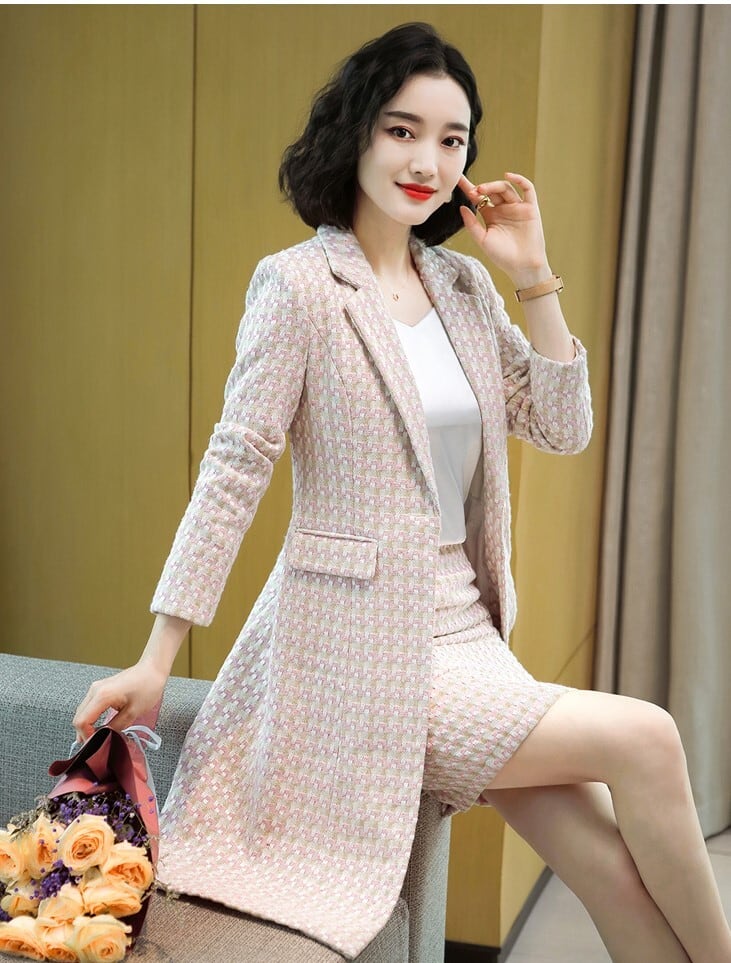 ツイード スーツ ジャケット ノーカラー セットアップ 韓国 ファンシー ツイード 生地 レディース スーツ スカートフォーマル 入学式 卒業式 ママ スーツ きれいめ シャネル コサージュ 毛糸 セレモニー エレガント シック モード 通勤 デイリー タウン お出かけ デート ST-013KT
