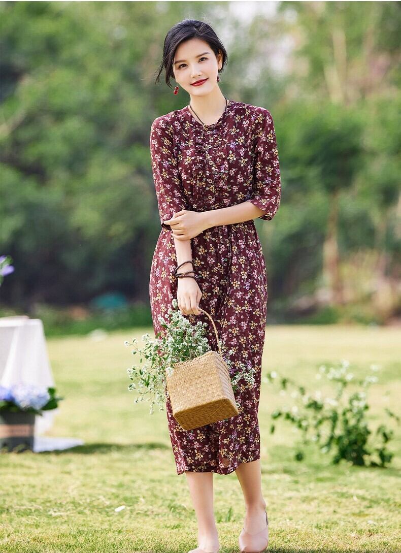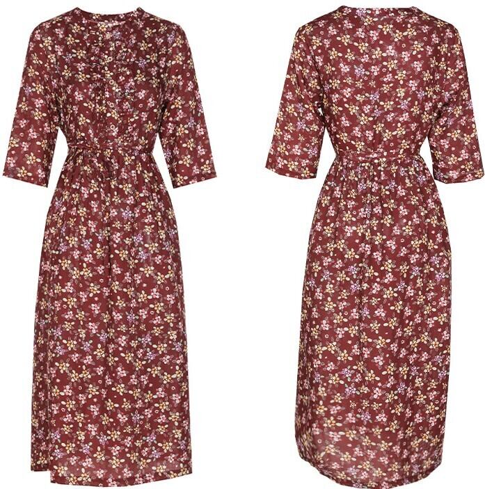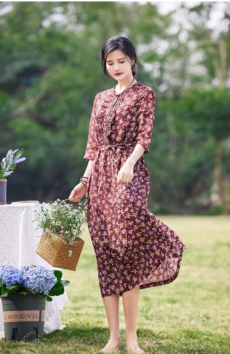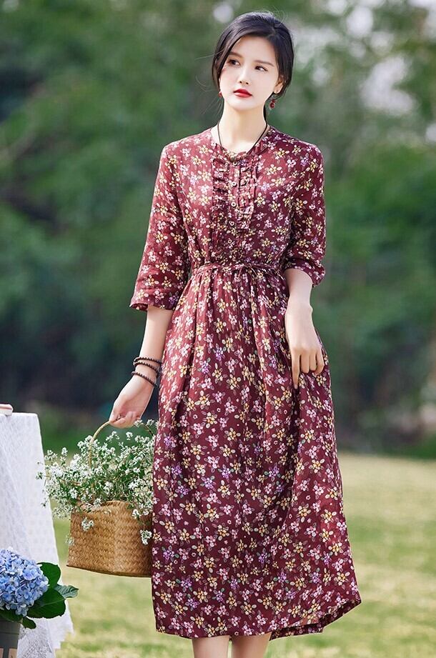 花柄 リネン ワンピース 長袖 ロング 生地 キャンバス 春 夏 レトロ 北欧 スカート レース タイト レディース 無地 しわ加工 ブラウス 膝丈 ミディアム きれいめ 韓国 マタニティ 大きいサイズ フリーサイズ シック モード 通勤 デイリー タウン お出かけ デート OP-024KT