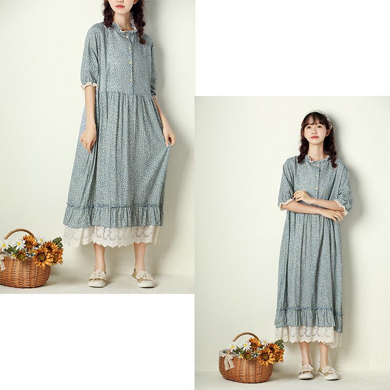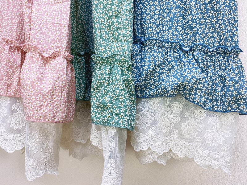 花柄 リネン ワンピース ガーリー ロング 生地 小花柄 フラワー Flower 春 夏 レトロ 北欧 スカート レース ティアード レディース フリル ゆったり ブラウス 膝丈 ミディアム かわいい 韓国 マタニティ 大きいサイズ フリーサイズ ラブリー 休日 キュート デイリー タウン お出かけ デート OP-026KT