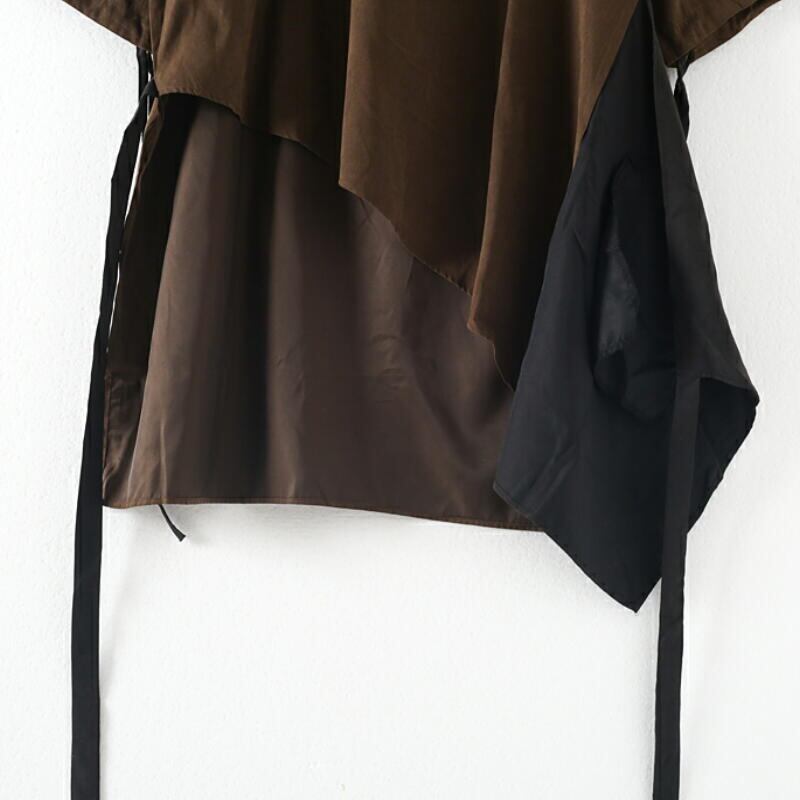 トップス Tシャツ 七分袖 ブラック ブラウン ツートン ブラック ブラウン 変形 個性的 春夏 お出かけ TP-007KM
