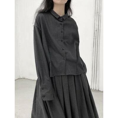 トップス シャツ ウール ブラック グレー シンプル カジュアル オフィス 韓国 大人 お出かけ デート 通勤 TP-009KM