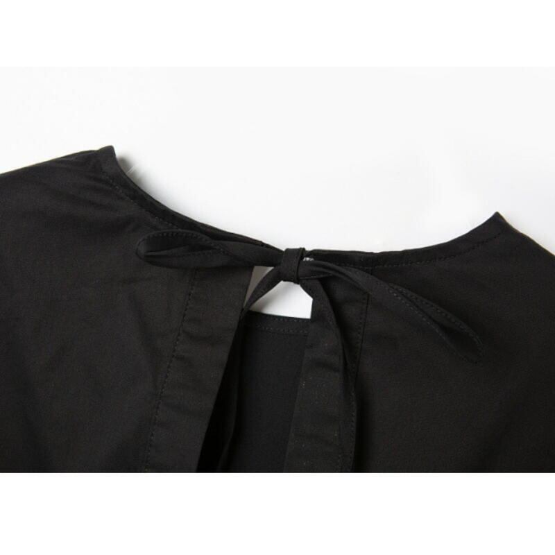 トップス シャツ 七分袖 ブラック ホワイト Aライン リボン カジュアル シンプル オフィス 大人 春夏 お出かけ デート 通勤 TP-013KM
