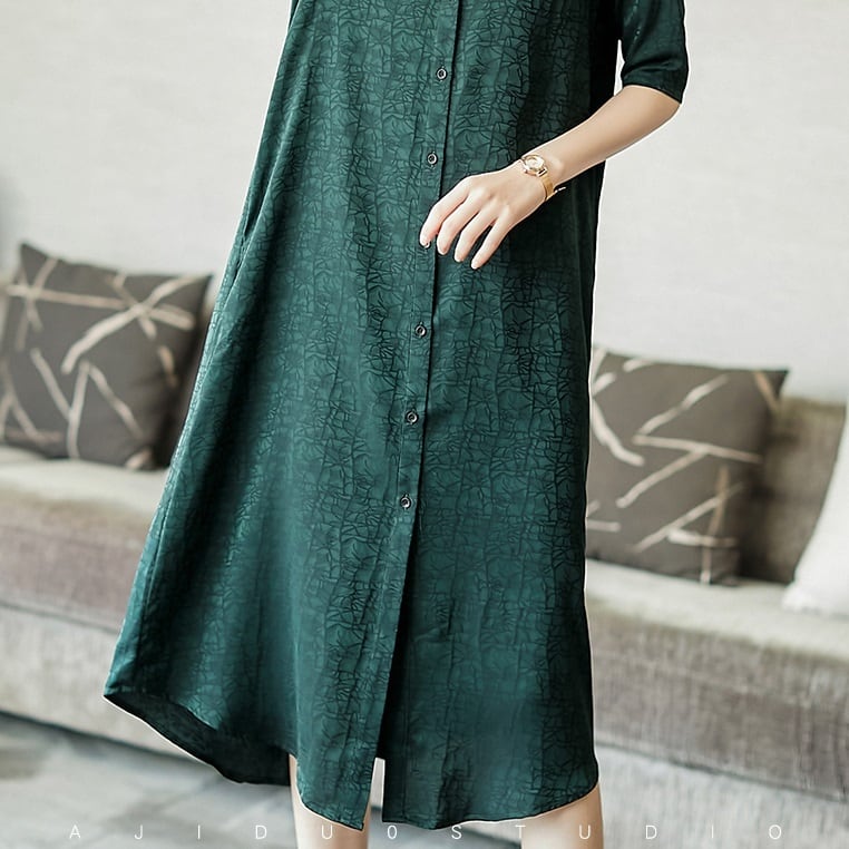 ゆったりシャツ半袖ワンピースミドル丈