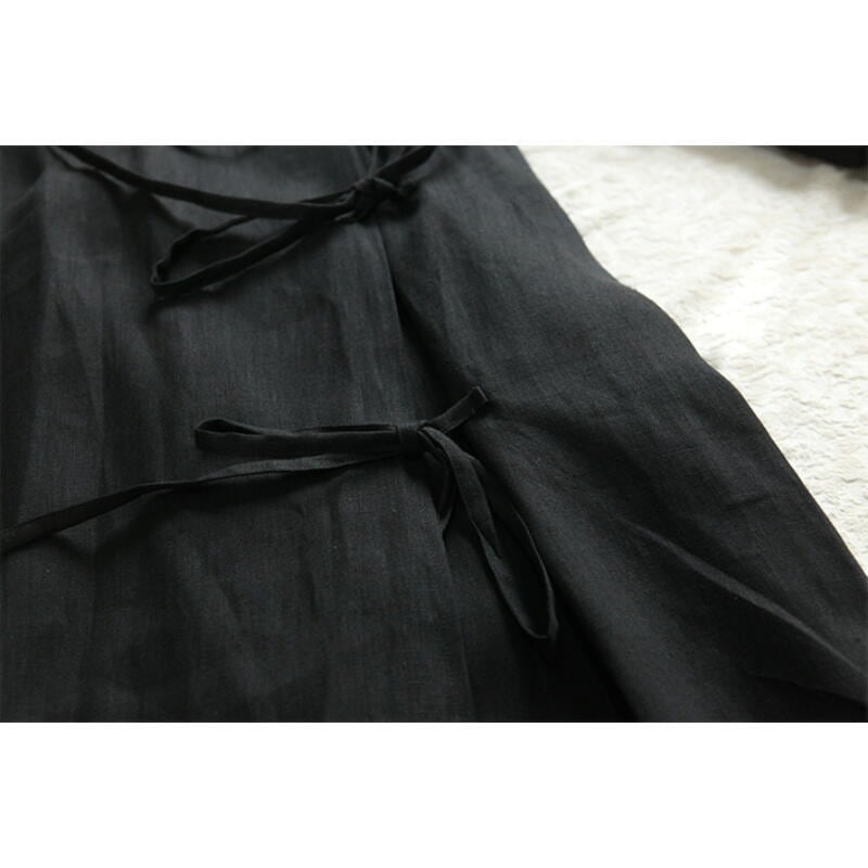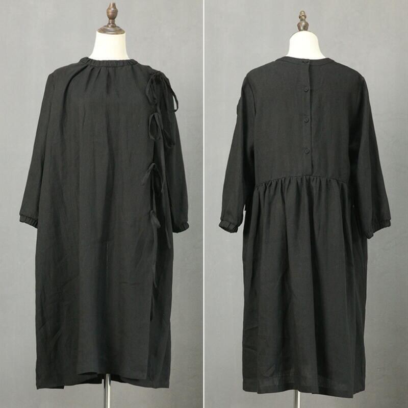 ワンピース 長袖 ロング丈 ブラック 黒 春夏 きれいめ レディース 麻 リネン ロング きれいめ オフィス カジュアル 韓国 通勤 ゆったりママ 20代 30代 40代 50代 60代 モード系 ナチュラル パーティー かわいい オフィス 保護者会 ガーリー 無地 オフィスカジュアル リボン ふわり ボタン ガーゼ 袖あり ポケット付き 低身長 OP-0019KM