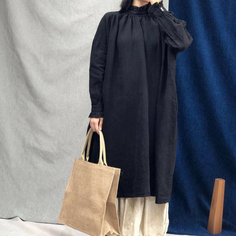 ワンピース 長袖 ロング丈 麻 リネンブラック ホワイト 黒 白 春夏 きれいめ レディース ロング きれいめ オフィス カジュアル 韓国 通勤 ゆったりママ 20代 30代 40代 50代 60代 モード系 フリル ナチュラル パーティー オフィス 上品 保護者会 無地 オフィスカジュアル リボン ふわり ボタン ガーゼ 袖あり 低身長 OP-0021KM