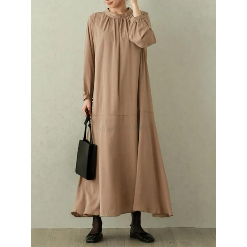 ワンピース 長袖 ロング丈 ブラック ベージュ 黒 綿 コットン 春夏 ウエスト aライン きれいめ レディース ロング 韓国 通勤 ゆったりママ 20代 30代 40代 50代 60代 モード系 ナチュラル パーティー オフィス 上品 保護者会 無地 オフィスカジュアル ふわり リボン ガーゼ 袖あり 前開き 低身長 OP-0032KM