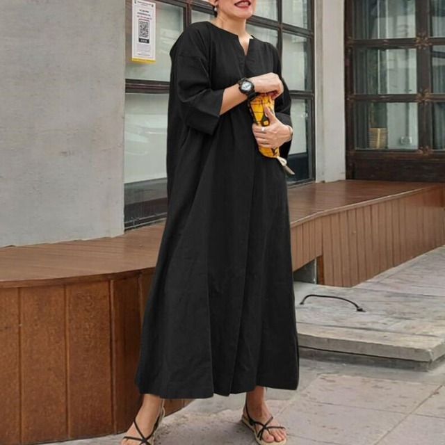 ワンピース 半袖 ロング丈 ブラック ブラウン ベージュ カーキ 綿 コットン 黒 茶 春夏 ウエスト パーティー vネック きれいめ レディース ロング カジュアル 韓国 通勤 ゆったり ママ 20代 30代 40代 50代 60代 ナチュラル パーティー かわいい 上品 保護者会 無地 ふわり ぽっちゃり ガーゼ 袖あり ボタン 低身長OP-0042KM
