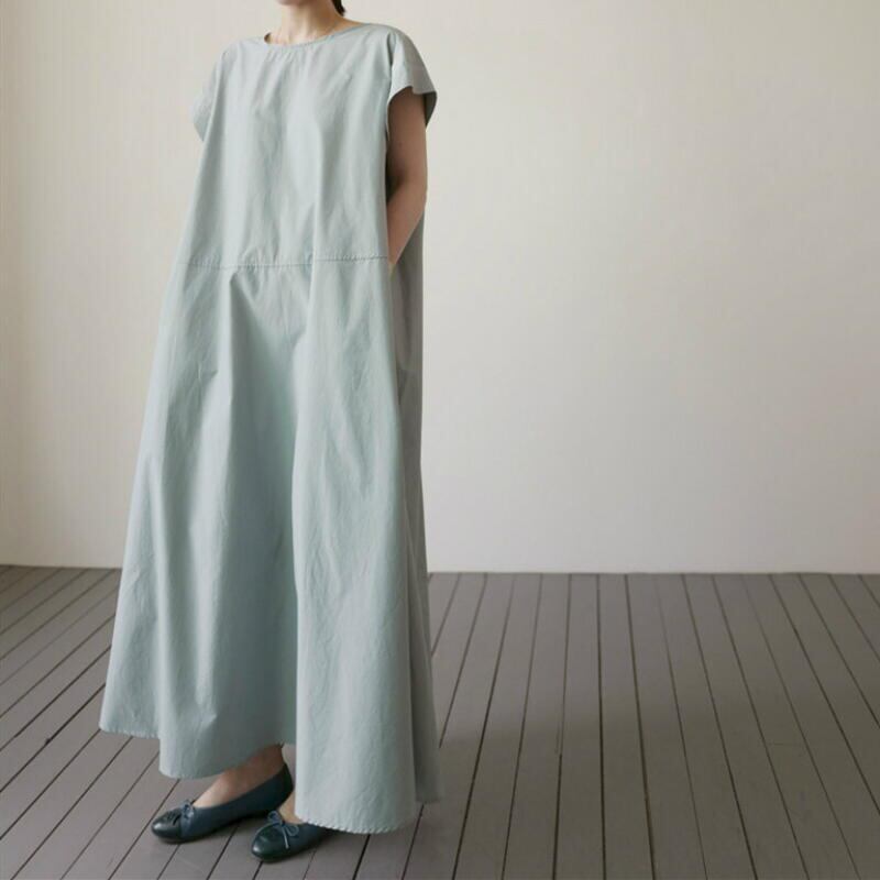 ワンピース 半袖 ロング丈 綿 コットン ブラック ライドブルー 春夏 aライン きれいめ レディース ロング オフィス カジュアル 韓国 通勤 ゆったりママ 20代 30代 40代 50代 60代 モード系 ナチュラル パーティー かわいい 上品 保護者会 ガーリー 無地 オフィスカジュアル ふんわり ガーゼ 袖あり 低身長 OP-0048KM