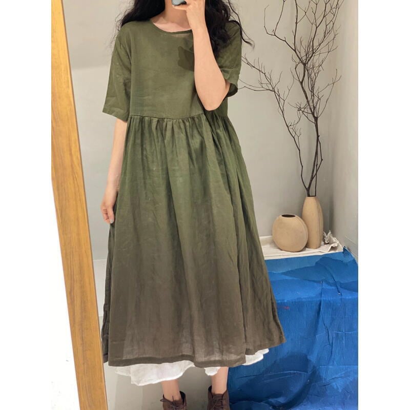 ワンピース 半袖 ロング丈 麻 リネン イエロー レッド グリーン ネイビー ブラウン 春夏 aライン レディース ロング きれいめ 韓国 通勤 ゆったりママ 20代 30代 40代 50代 60代 モード系 ナチュラル パーティー かわいい 保護者会 ガーリー 無地 オフィスカジュアル ふわり ガーゼ 袖あり 低身長 OP-0054KM