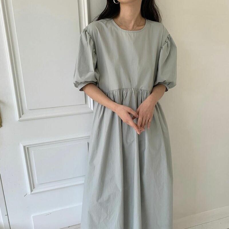 ワンピース 半袖 ミディアム丈 ホワイト ブラック ライトベージュ 春夏 aライン きれいめ レディース ロング きれいめ 韓国 通勤 ゆったりママ 20代 30代 40代 50代 60代 ナチュラル パーティー かわいい 保護者会 ガーリー 無地 ふわり ボリューム袖 ぽわん袖 袖あり 低身長 OP-0065KM