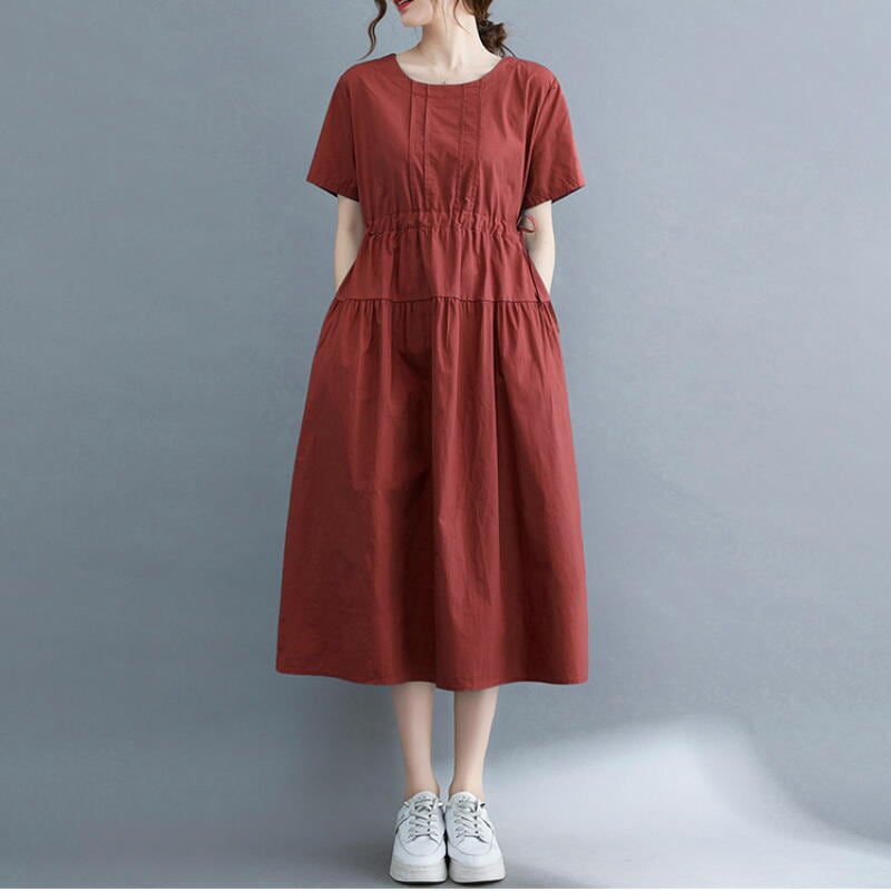 ワンピース 半袖 ミディアム丈 綿 コットン ホワイト ブラック レッド ブルー 春夏 aライン きれいめ レディース ロング きれいめ 韓国 通勤 ゆったりママ 20代 30代 40代 50代 60代 ナチュラル パーティー かわいい 保護者会 無地 オフィスカジュアル ふわり ガーゼ 袖あり 低身長 OP-0067KM