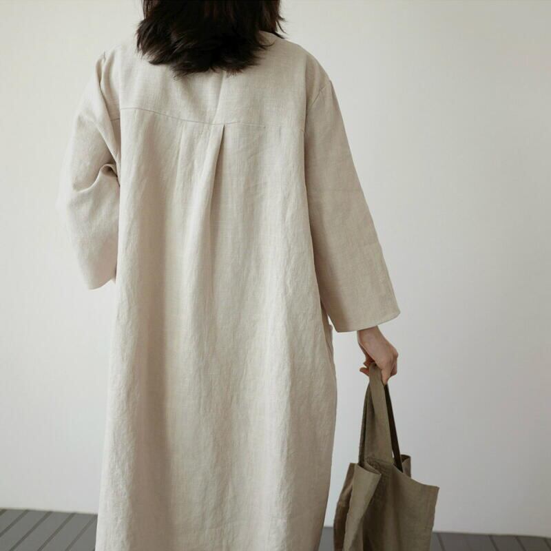 ワンピース 長袖 ロング丈 綿 コットン サーモンピンク ライトベージュ 春夏 aライン きれいめ レディース ロング 韓国 通勤 ゆったり ママ 20代 30代 40代 50代 60代 ナチュラル パーティー かわいい 上品 保護者会 無地 オフィスカジュアル ふわり ガーゼ 袖あり 低身長 OP-0073KM