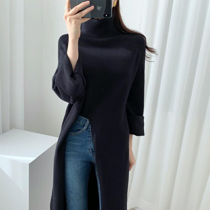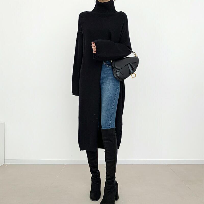 ワンピース 長袖 ロング丈 ブラック 秋冬 きれいめ レディース スリット ロング 韓国 通勤 ゆったり ママ 20代 30代 40代 50代 60代 パーティー 上品 保護者会 無地 オフィスカジュアル ぽわん袖 袖あり 低身長 OP-0082KM