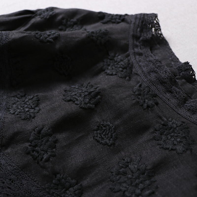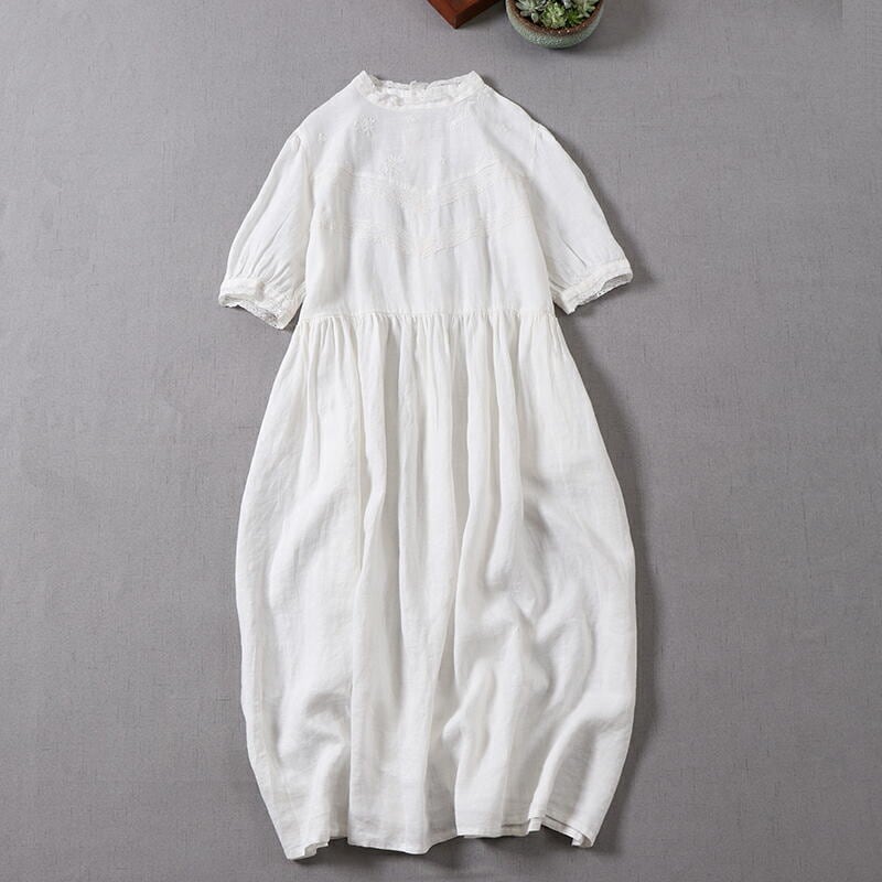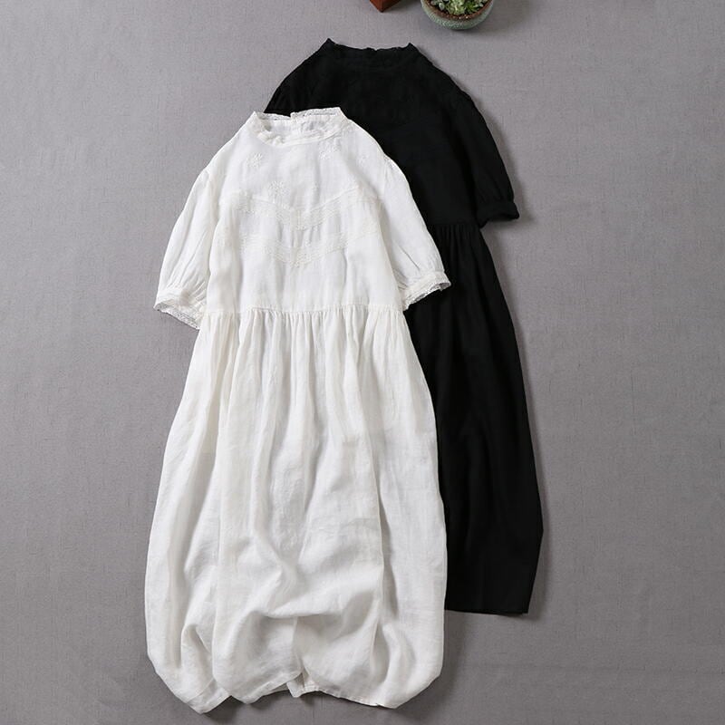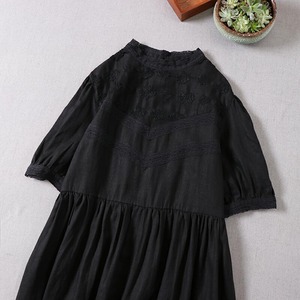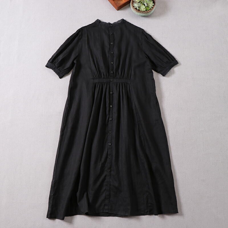 ワンピース 半袖 ロング丈 麻 リネン ブラック 春夏 aライン きれいめ レディース ロング 韓国 通勤 ゆったり ママ 20代 30代 40代 50代 60代 ナチュラル パーティー かわいい 上品 保護者会 無地 オフィスカジュアル ふわり ガーゼ ボリューム袖 ぽわん袖 袖あり 低身長 OP-089KM