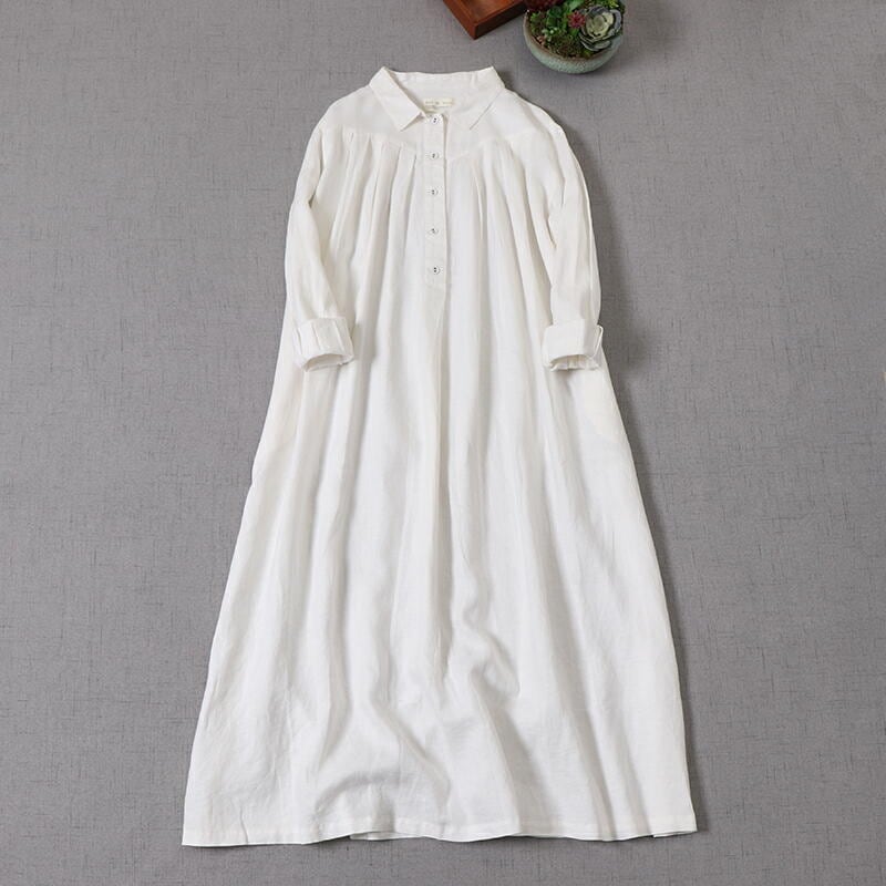 ワンピース 長袖 ロング丈 麻 リネン ブラック ホワイト 春夏 aライン きれいめ レディース ロング 韓国 通勤 ゆったり ママ 20代 30代 40代 50代 60代 ナチュラル パーティー かわいい 上品 保護者会 無地 オフィスカジュアル ふわり ガーゼ ボリューム袖 ぽわん袖 袖あり 低身長 OP-097KM