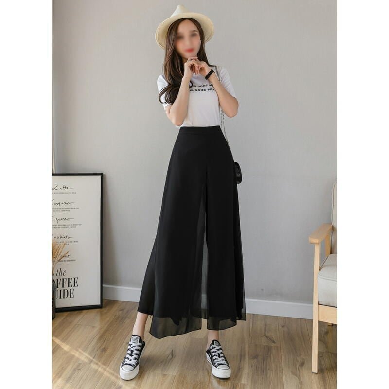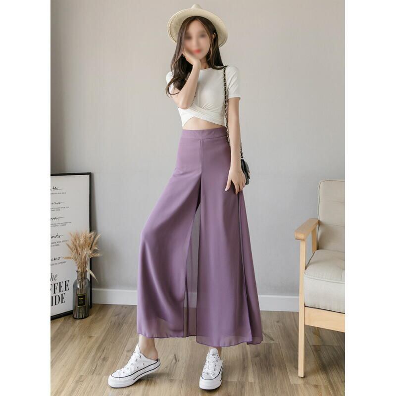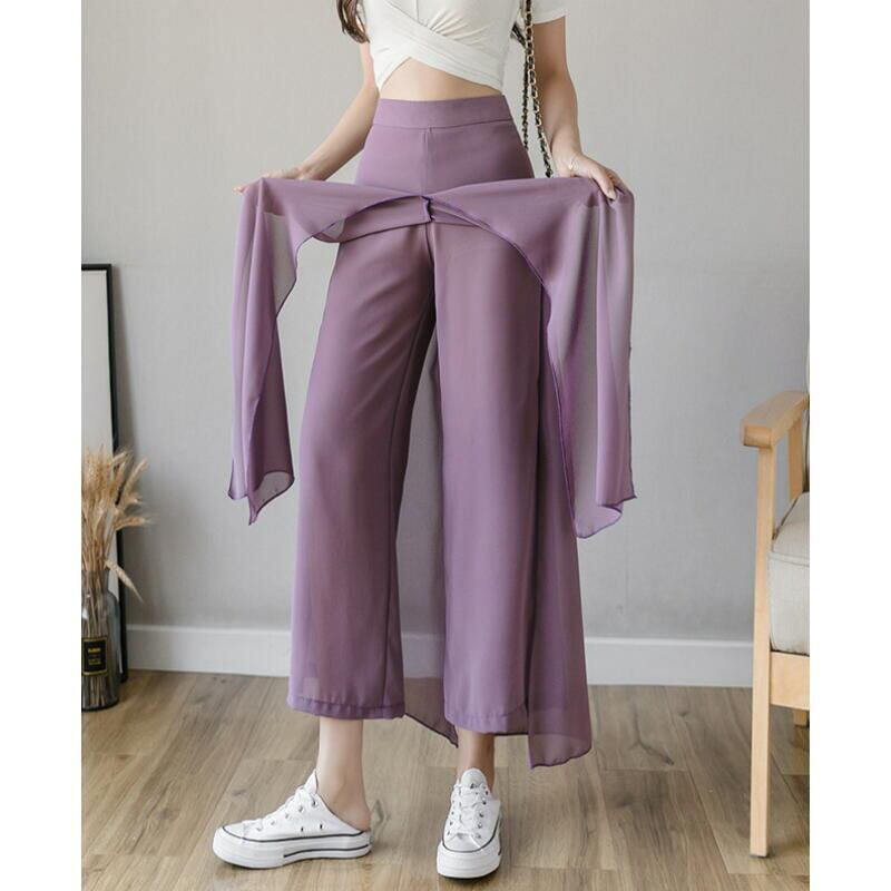 パンツ ブラック ホワイト ライトブルー パープル 春夏 変形 ゆったり ふんわり レディース シフォン ウエスト ゴム ワイド 50代 40代 カラー きれいめ スリット BM-013KM