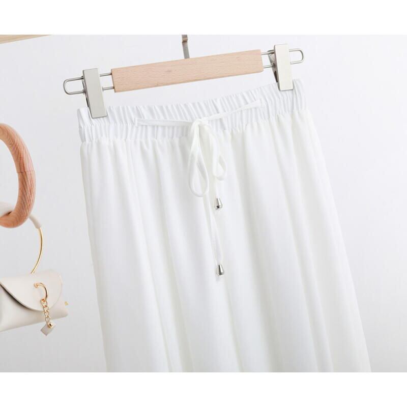 パンツ ブラック ホワイト ライトブルー 春夏 変形 ゆったり ふんわり レディース シフォン ウエスト ゴム ワイド 50代 40代 カラー きれいめ スリット BM-015KM