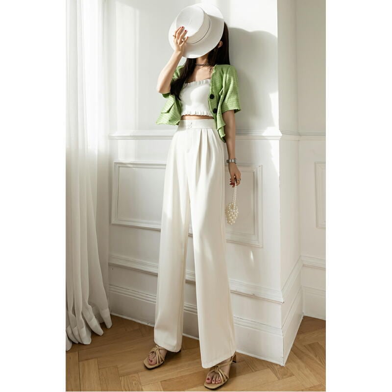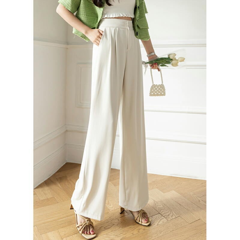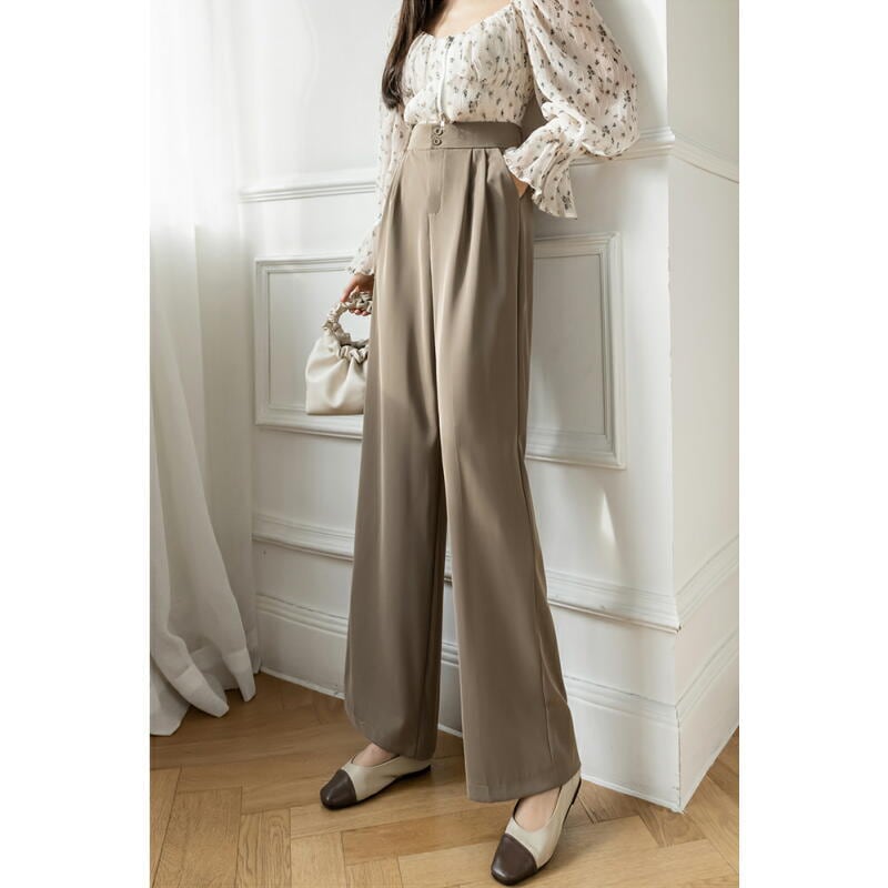 パンツ ブラック ホワイト ベージュ ライトブルー 春夏 変形 ゆったり レディース スラックス カジュアル オフィス ウエスト ゴム ワイド 50代 40代 カラー きれいめ スリット BM-016KM