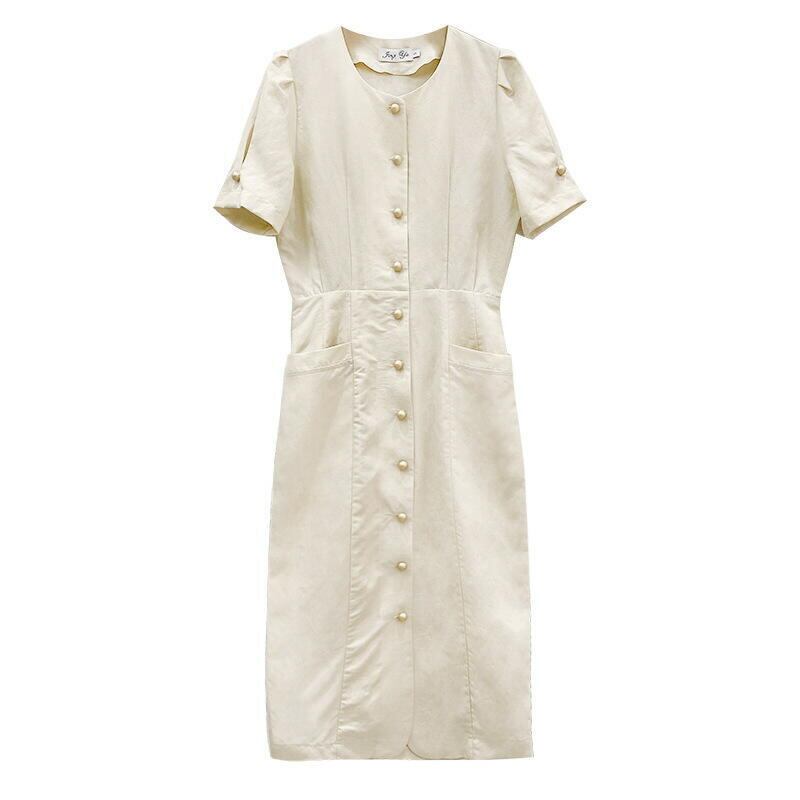ワンピース 半袖 ミディアム丈 麻 綿 リネン コットン ホワイト ネイビー 春夏 きれいめ レディース シャツ きれいめ オフィス カジュアル 韓国 通勤 ママ 20代 30代 40代 50代 60代 ナチュラル パーティー かわいい オフィス 上品 保護者会 ガーリー 無地 オフィスカジュアル 袖あり 低身長 OP-110KM