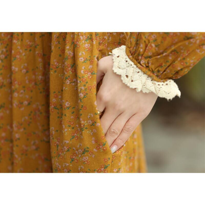 ワンピース 長袖 ロング丈 ベージュ オレンジ イエロー ピンク 春秋冬 aライン きれいめ レディース ロング 韓国 ゆったり ママ 20代 30代 40代 50代 60代 ナチュラル かわいい レース 上品 保護者会 花柄 ふわり ボタン 袖あり 低身長 OP-115KM