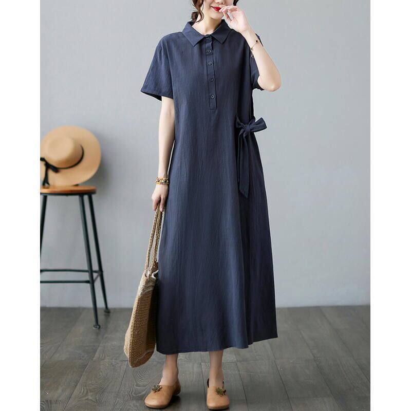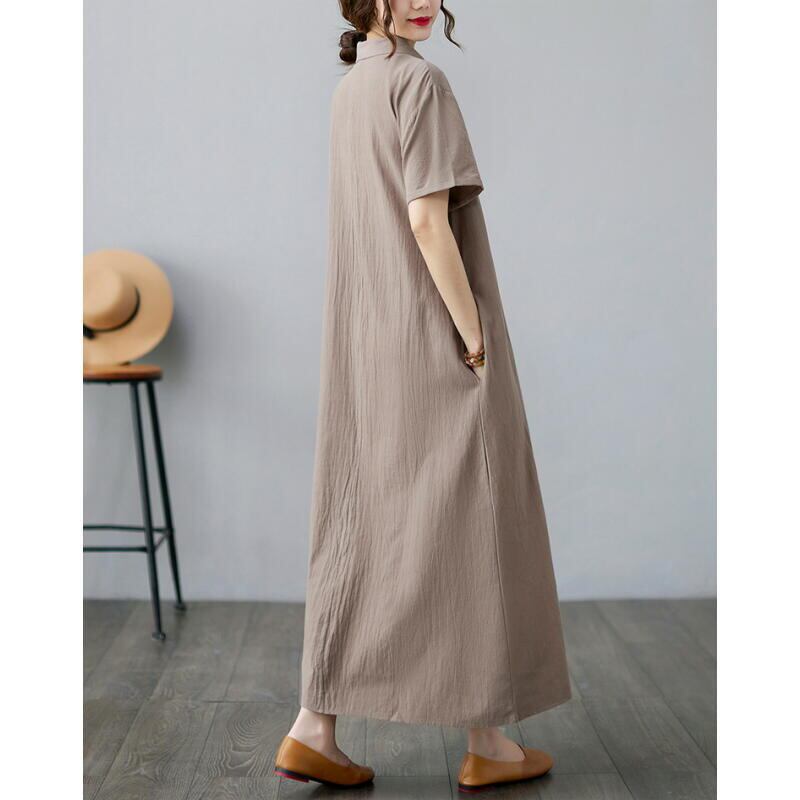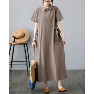 ワンピース 半袖 ロング丈 ブラック ネイビー ブラウン 春夏 aライン シャツ きれいめ レディース カジュアル 韓国 通勤 ゆったりママ 20代 30代 40代 50代 60代 モード系 ナチュラル かわいい 上品 保護者会 ガーリー 無地 オフィスカジュアル ふわり 袖あり リボン 低身長 OP-116KM