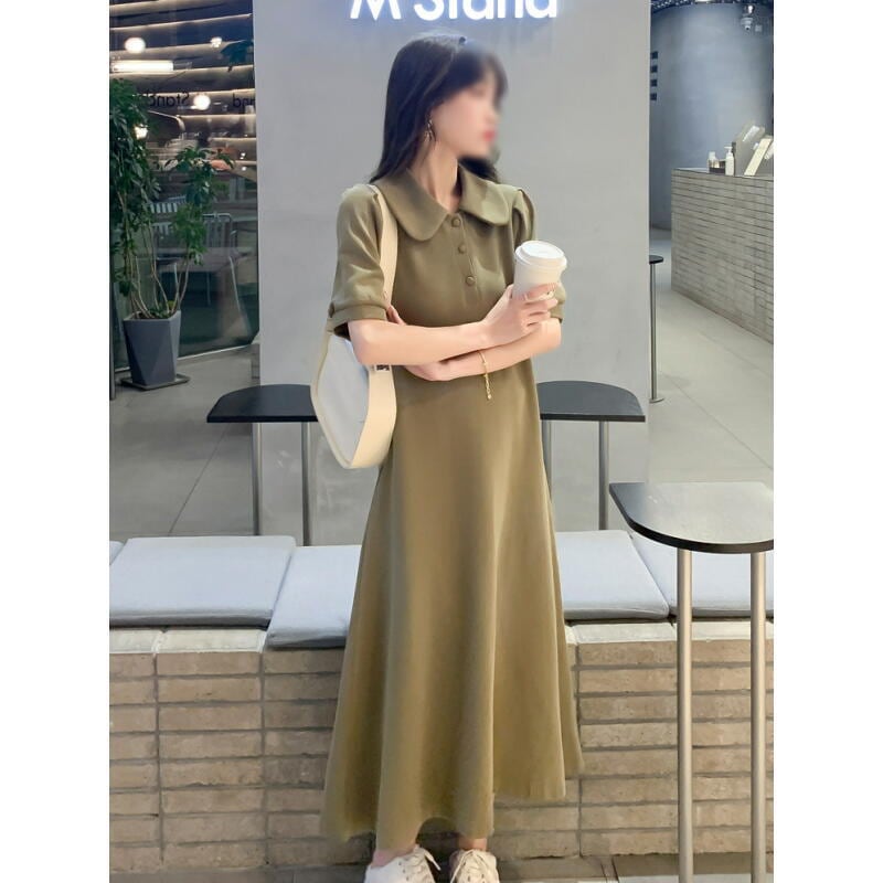 ワンピース 半袖 ロング丈 グレー カーキ 春夏 aライン シャツ きれいめ レディース カジュアル 韓国 通勤 ゆったりママ 20代 30代 40代 50代 60代 モード系 ナチュラル かわいい 上品 保護者会 ガーリー 無地 オフィスカジュアル ふわり 袖あり 低身長 OP-122KM