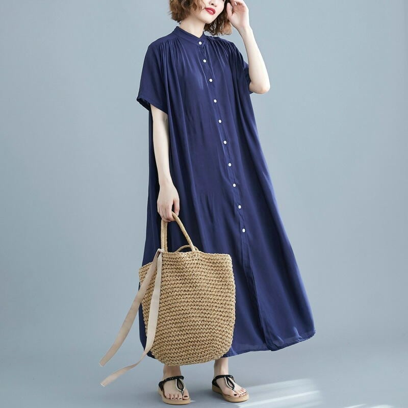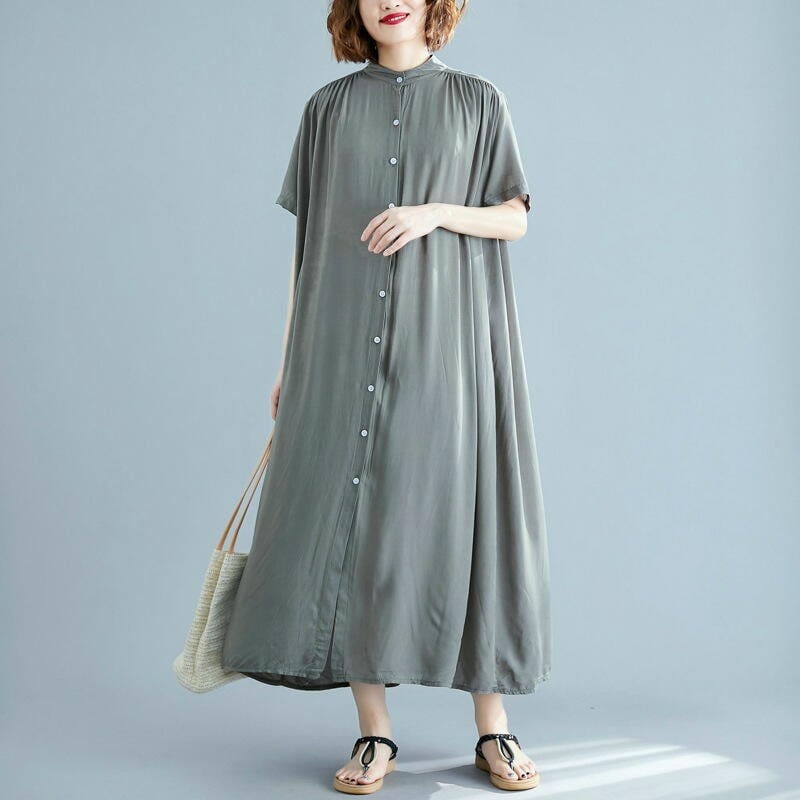 ワンピース 半袖 ロング丈 ブラック ホワイト グレー ベージュ ブラウン ネイビー カーキ 春夏 aライン シャツ きれいめ レディース カジュアル 韓国 通勤 ゆったりママ 20代 30代 40代 50代 60代 ナチュラル かわいい 保護者会 ガーリー 無地 オフィスカジュアル ふわり 袖あり 低身長 OP-129KM