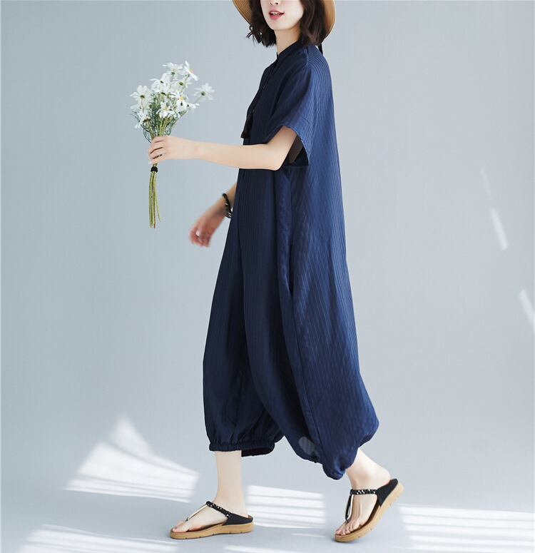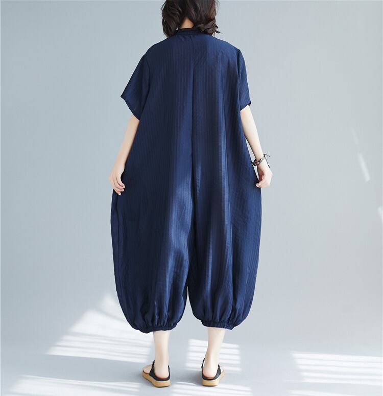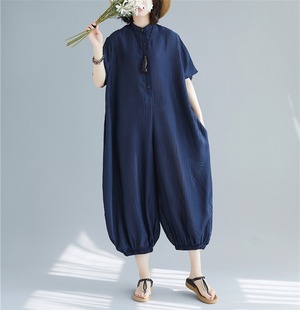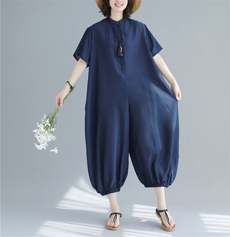 オールインワン サロペット つなぎ 半袖 バルーン ワイド リネン 麻 綿 涼しい 春 夏 レトロ ガーリー 北欧 生地 柔らかい ネイビー パンツ レース レディース 無地 しわ加工 ブラウス 膝丈 ミディアム きれいめ 韓国 マタニティ 大きいサイズ フリーサイズ シック モード 通勤 デイリー オフィスカジュアル ふわり 袖あり さらさら 低身長 高身長 リボン タウン お仕事コーデ お出かけ デート 旅行 夏休み AI-120KT