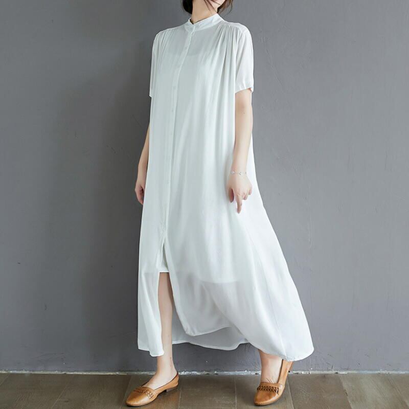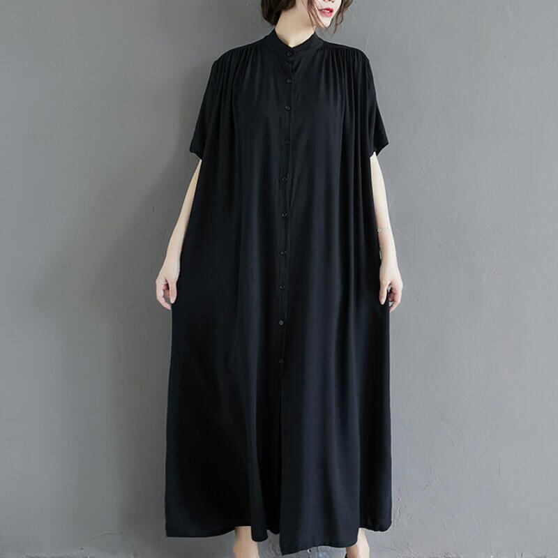 ワンピース 半袖 ロング丈 ブラック ホワイト 春夏 aライン シャツ きれいめ レディース カジュアル 韓国 通勤 ゆったりママ 20代 30代 40代 50代 60代 ナチュラル かわいい 上品 保護者会 ガーリー 無地 オフィスカジュアル ふわり 袖あり 低身長 OP-131KM