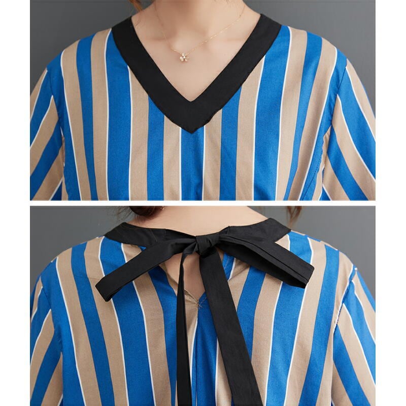 ワンピース 半袖 ロング丈 ブラック ブルー 春夏 aライン vネック きれいめ レディース カジュアル 韓国 通勤 ゆったりママ 20代 30代 40代 50代 60代 ナチュラル かわいい 上品 保護者会 ガーリー 無地 オフィスカジュアル ふわり 袖あり リボン 低身長 OP-145KM