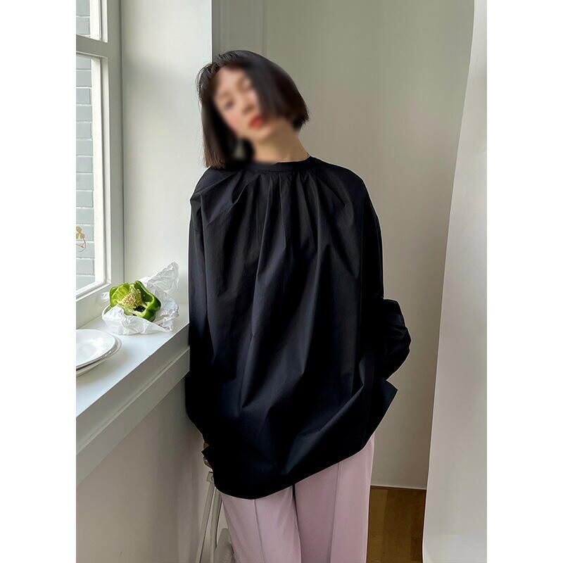 トップス カットソー 長袖 ショート丈 ブラック ホワイト ピンク ライトブルー 春秋冬 オフィス 韓国 シャツ レディース かわいい きれいめ 結婚式 大人 スタイル 入学式 40代 体型カバー ボリューム袖 フォーマル 1枚で決まる 上質 vネック 薄手 大人かわいい TP-028KM