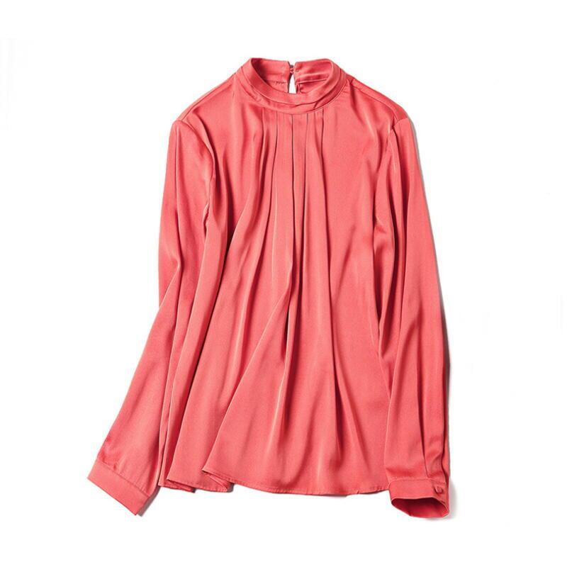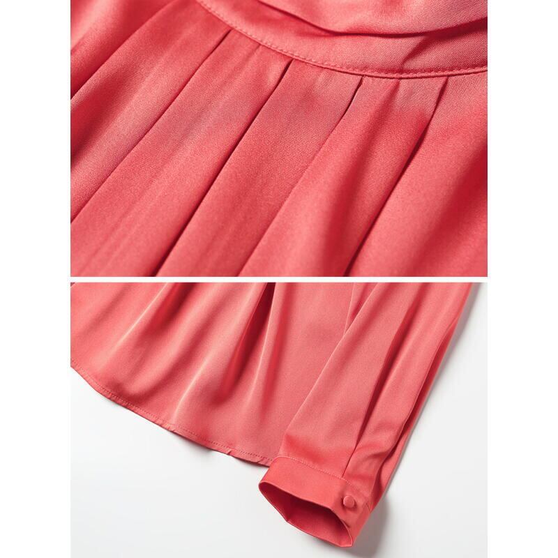 トップス カットソー 長袖 シルク ショート丈 ピンク 春秋冬 オフィス 韓国 レディース かわいい きれいめ 結婚式 大人 スタイル 入学式 40代 体型カバー ボリューム袖 フォーマル 1枚で決まる 上質 vネック 薄手 大人かわいい TP-0036KM