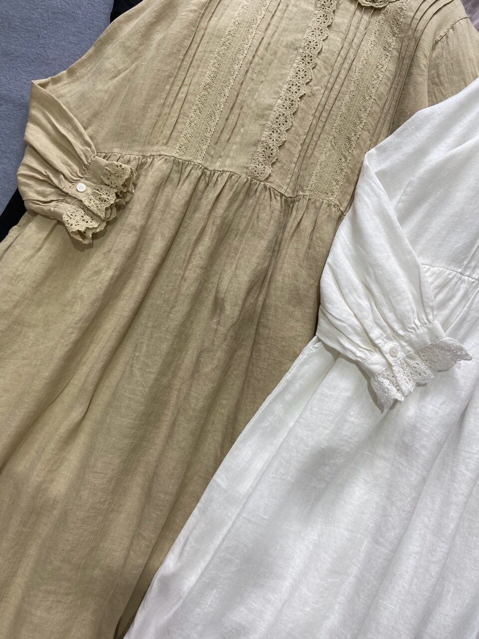 ワンピース フリル レース 長袖 ロング リネン 麻 綿 涼しい 春 夏 レトロ ガーリー おしゃれ きれいめ 北欧 生地 シャツワンピ オレンジ テラコッタ ネイビー スカート レース レディース 無地 しわ加工 ブラウス 膝丈 ミディアム きれいめ 韓国 マタニティ 大きいサイズ フリーサイズ シック モード 通勤 デイリー オフィスカジュアル ふわり 袖あり さらさら 低身長 高身長 リボン タウン お仕事コーデ お出かけ デート 旅行 夏休み OP-131KT