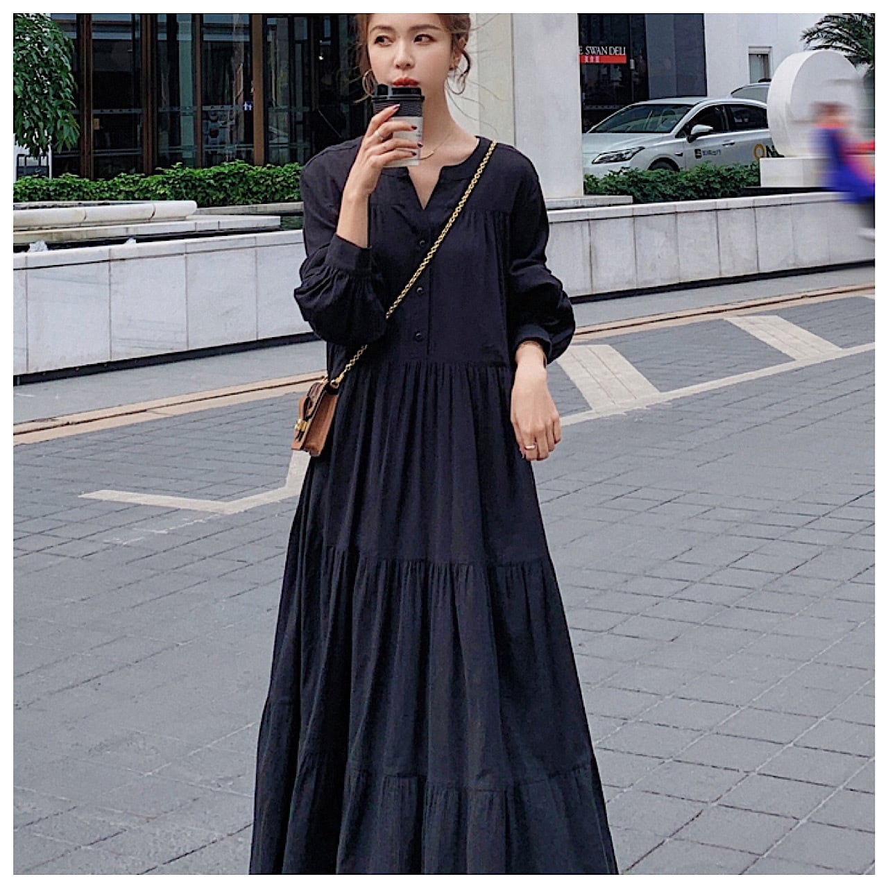 ワンピース レデイース 秋冬 きれいめ レディース 黒 ロング マキシ かわいい コットン リネン ゆったり 大きいサイズ 30代 40代 50代 大人かわいい 秋 韓国 OP-012KMY