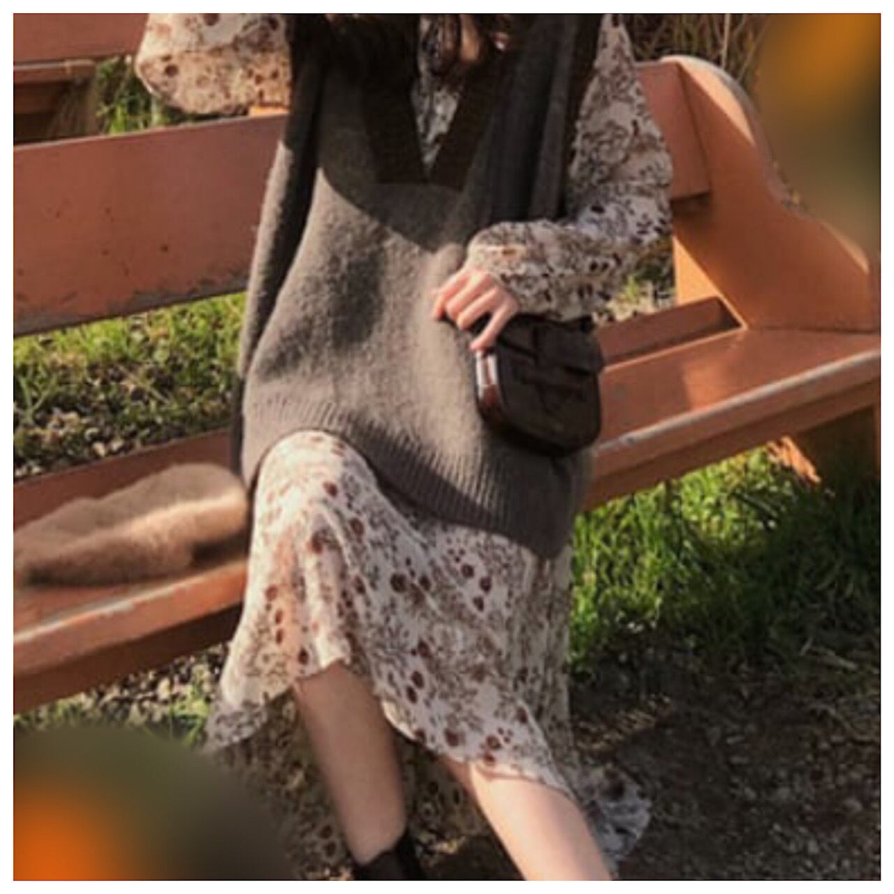 ワンピース レデイース ロング 秋冬 きれいめ 長袖 シフォン レディース カジュアル 可愛い 上品 女性 花柄 ゆったり 体型カバー 30代 40代 50代 大人かわいい秋 韓国 OP-021KMY